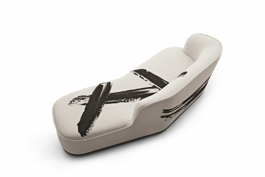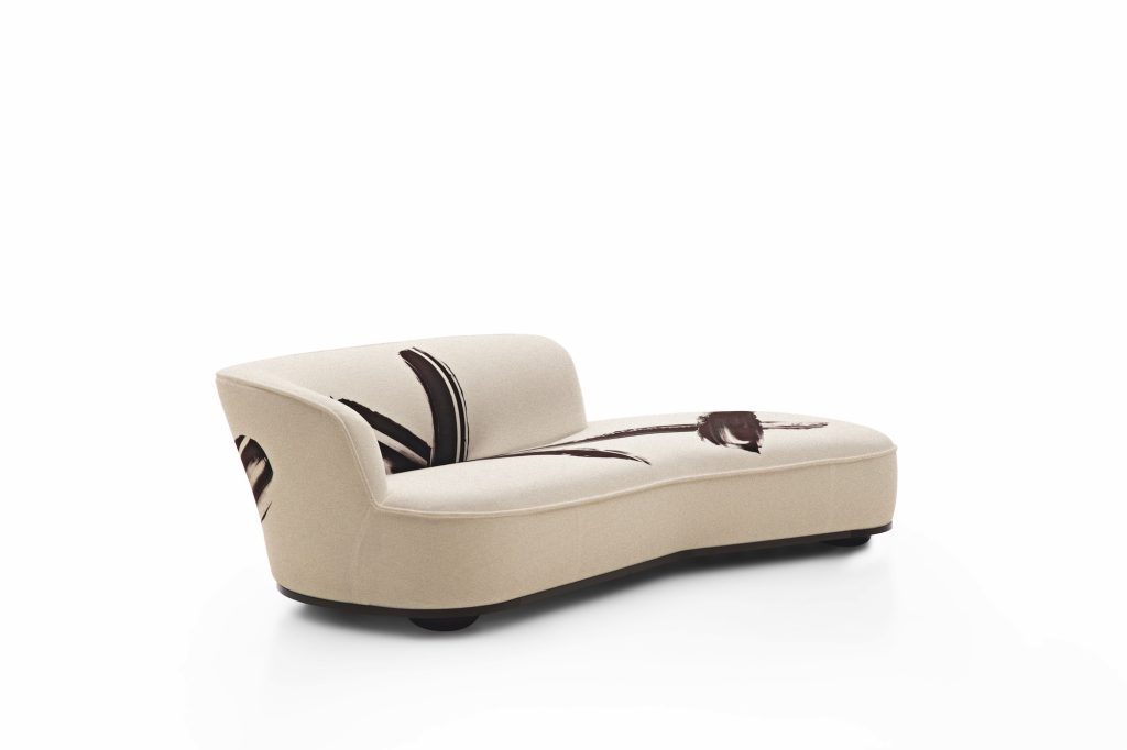 「Lilum 50」は、アントニオ・チッテリオによる既存モデルを基盤に、ヴァン・リムスダイクのアートワークをリネンファブリックに転写した、まさに“座るアートピース”。