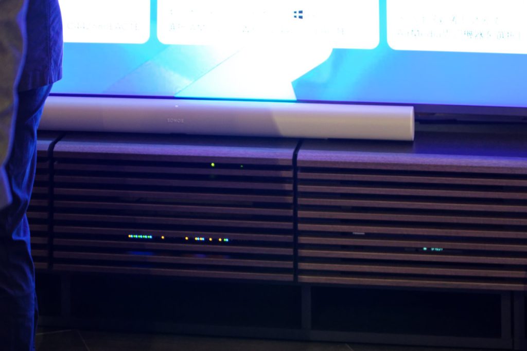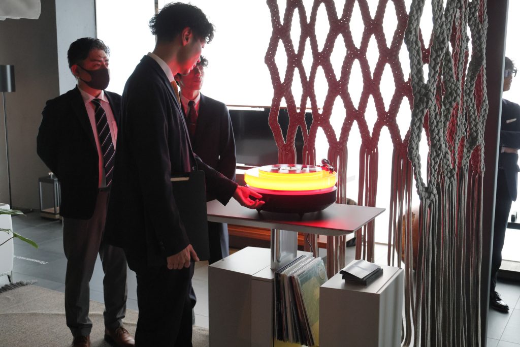 その後、会場の展示を活用して実際にホームオートメーションのデモンストレーションを敢行。朝、昼、夕方、夜、就寝時の照明演出と、「大型テレビREGZAのあるゾーン」「プロジェクターのあるゾーン」「レコードプレーヤーHotaruが置かれたゾーン」毎に映像や音楽の配信が行われた。ちなみに、離れたゾーンに置かれたアナログプレーヤーHotaruの音が、ネットワークを通じて、別のゾーンのSonosスピーカーで再生されるといったことも可能だった。