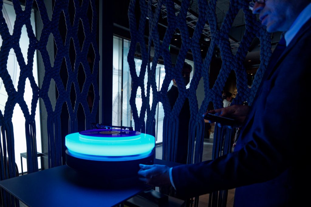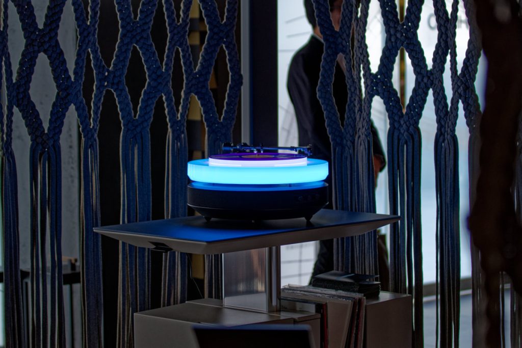 今回展示されたオールインワン・ターンテーブル「Hotaru」は、オーディオテクニカのアナログ思想のまさに象徴であり、浮遊するターンテーブルに載せられたアナログレコードのサウンドと戯れるように煌めく光のマリアージュが、人のアナログ的な感性を刺激する逸品だ。