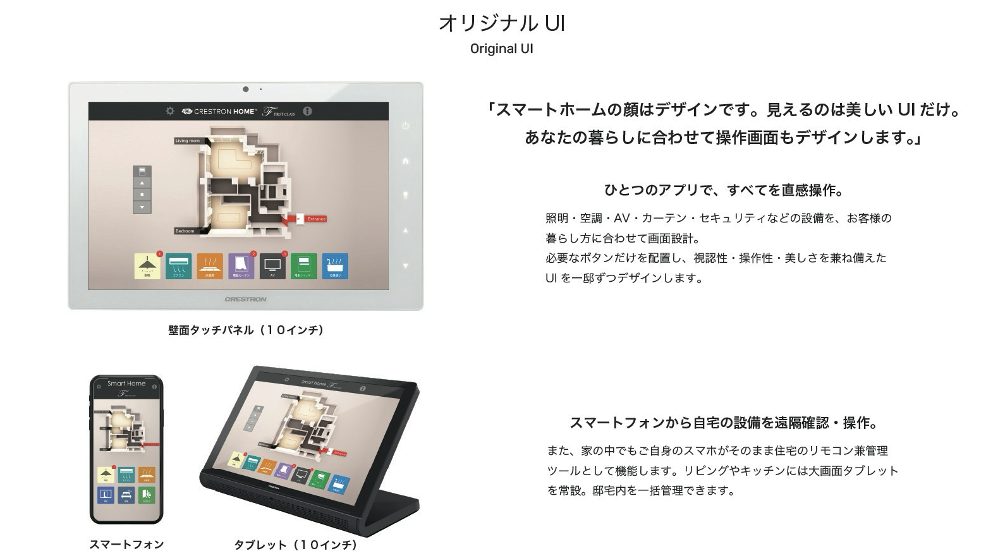 「スマートフォンやタッチパネルのユーザーインターフェイス(UI)にもこだわっております。お客様のお宅や間取りを反映したオーダーメイドのインターフェイスにすることができます」