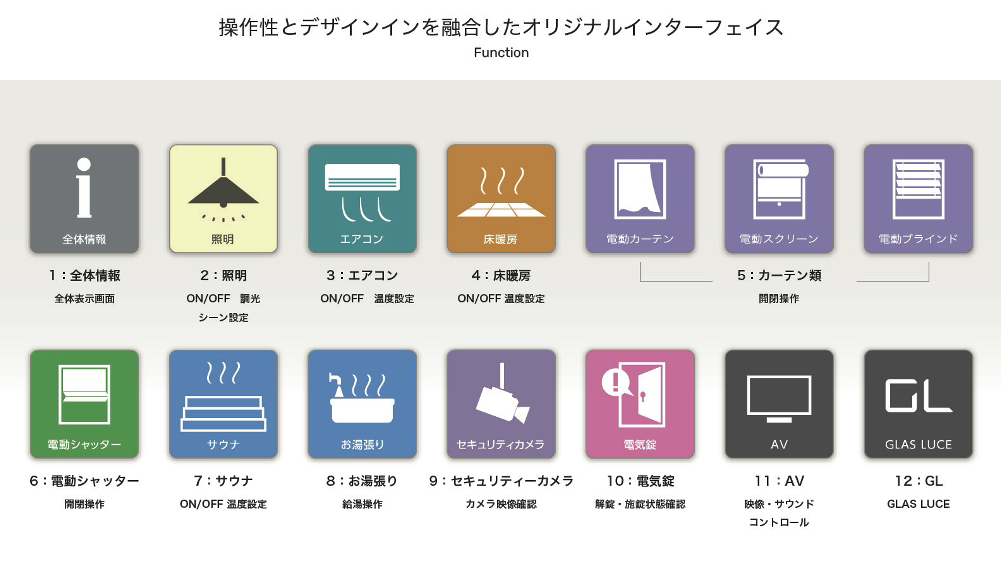 その後、システムの背景にある基本構成を説明。「インターフェースからの入力信号が心臓部でコントロールされ、各機器と連携して、照明、カーテン、ブラインド、空調、ビデオ、オーディオ、セキュリティ、プール・スパを制御いたします。これらをひとつのアプリ、ひとつのボタンで直感的に操作できます。 複雑な操作が不要で、ワンタッチでシーンが立ち上がり、空間全体が理想の明かるさになります」として、シーンの映像を流し、スマートホームを導入した休日の家での一日が紹介された。