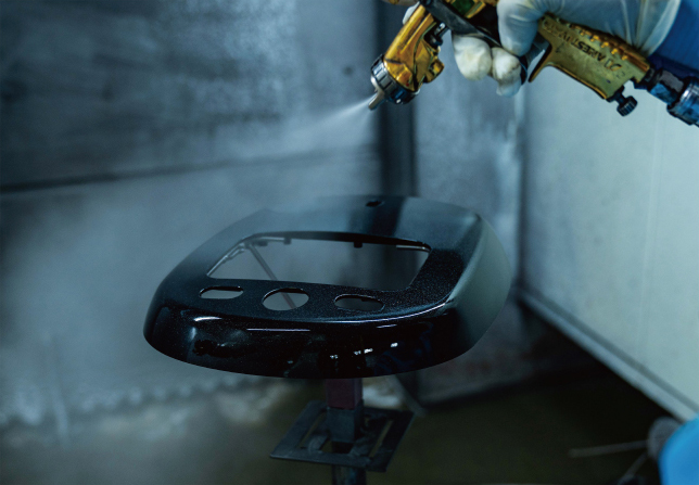 塗装はロボットによる施業に加え、色と部品に応じて職人が手吹きにて1つずつ塗装し、6層もの重ね塗りを行い、立体感を出ている。さらに、従来は実現が難しかったステンレスへの着色も実現。加えてJRX-MC型は、カタフレームにも着色技術の採用と反転液晶を採用することで、一層の高級感を演出している。