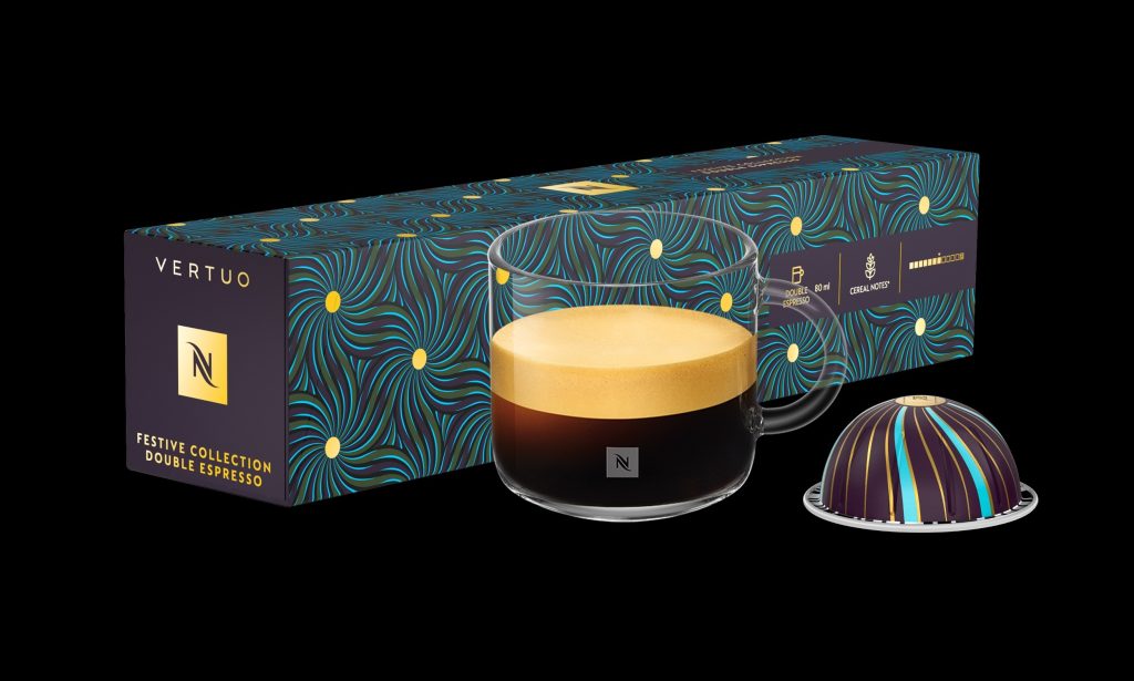 2025年冬限定の「フェスティブ コレクション ダブルエスプレッソ(ヴァーチュオ向け)」と「フェスティブ コレクション エスプレッソ(オリジナル向け)」は、ルワンダやコンゴ産のアラビカ種を中心にブレンドしたシリーズ。穀物やフルーティーな香りに、ほのかなウッディー感とキャラメルのニュアンスを重ね、ブラックだけでなくラテマキアートでも楽しめるブレンドとしている。