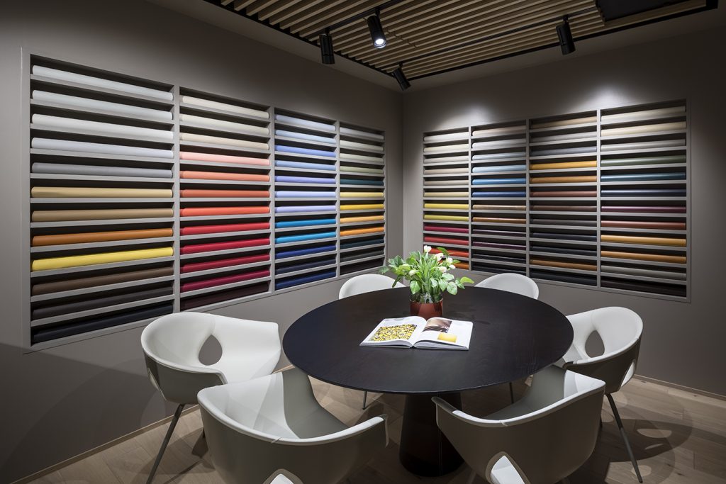 舞台は、東京・青山のポルトローナ・フラウショールーム。ポルトローナ・フラウは1912年創業のイタリアを代表するラグジュアリーファニチャーブランド。