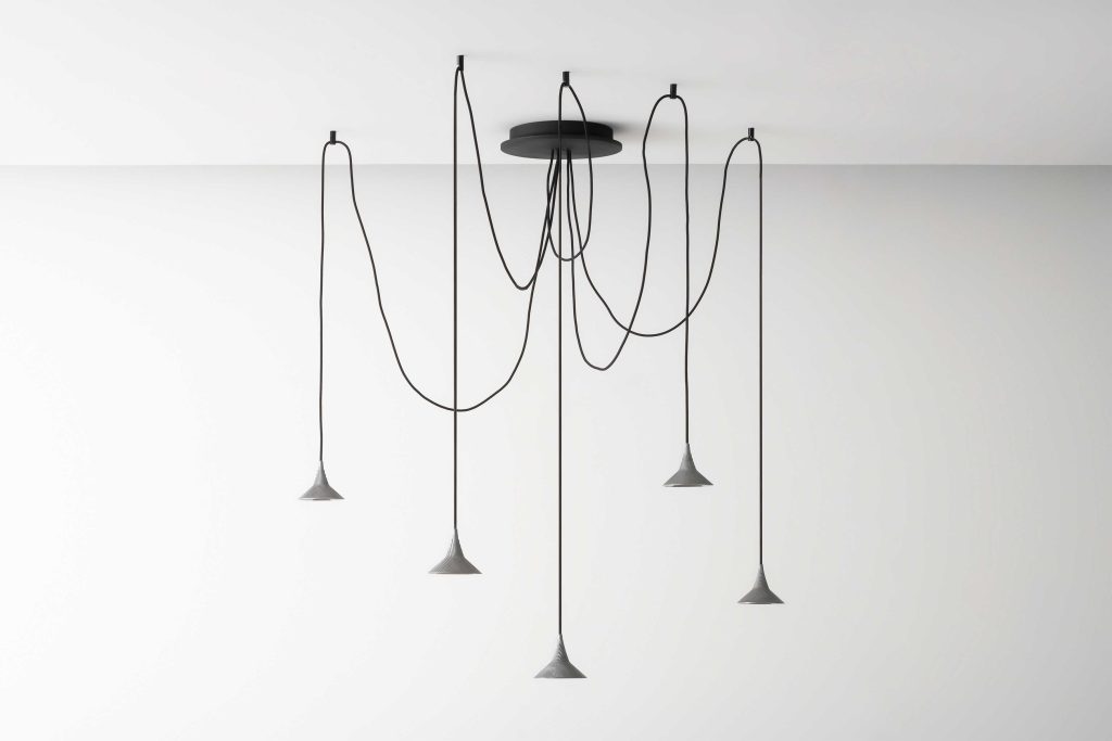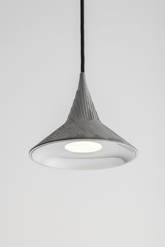 2種類のシェードのペンダントのシリーズ「Look at Me」は、光を幾何学として再構築する。