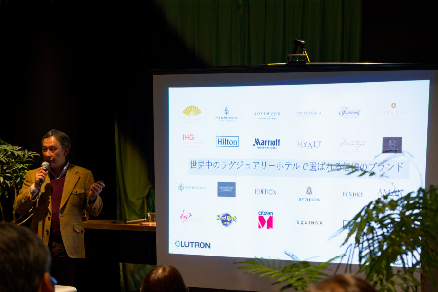 続いて、日本カントリーマネージャー谷崎氏がルートロンの60年の歴史を語り、ホームワークスがいまや世界のラグジュアリーホームシステムの定番であることをアピールした。