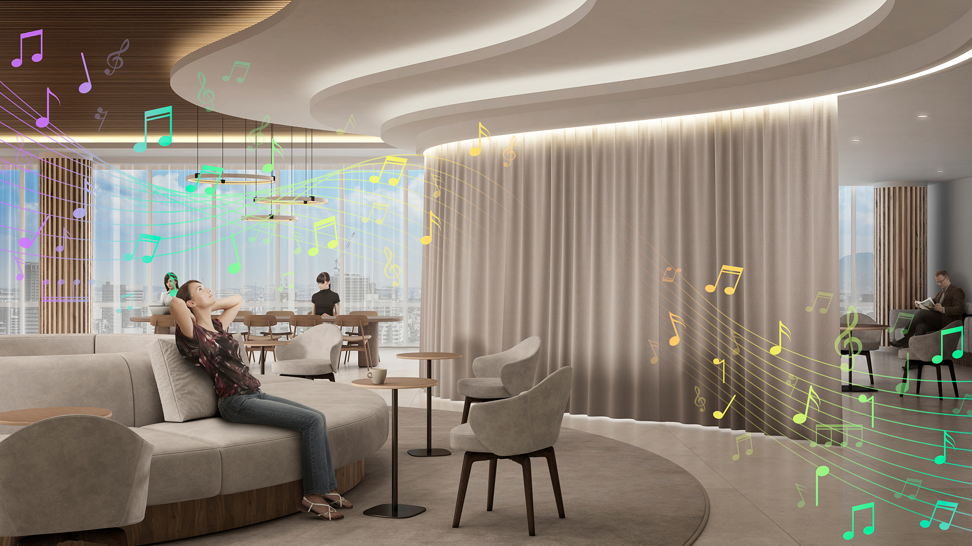 サンゲツがもつインテリアデザインの知見と掛け合わせることで、「聴覚に訴える空間デザイン」という新領域が拓かれる。
