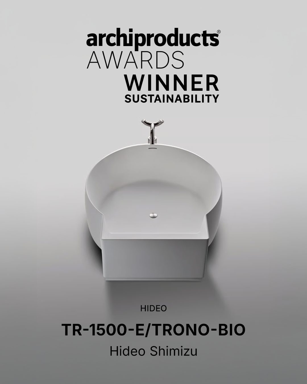 イタリアから朗報が届いた。第24回「Living Wellness in Luxury」アフタヌーンパーティの舞台を飾った〈HIDEO〉の新作バスタブ「TR-1500-E/TRONO-BIO」が、イタリア・ミラノを拠点とする国際的デザイン賞 Archiproducts Design Awards 2025 のバスルーム部門において、Sustainability Award(サステイナビリティ・アワード) を受賞した。HIDEOブランドとしては、Archiproducts Design Awards 2025での受賞は通算3度目となる。