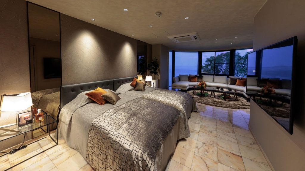 ゲストルームは、まるでホテルスイートのような設えで、訪れる者の記憶に深く刻まれる“迎賓の劇場”だ。