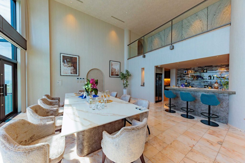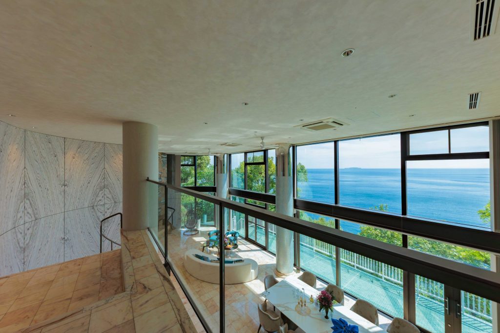 「海を我がものにする、静謐なる贅沢」というテーマのもと、素材・色彩・光を統合した空間デザインが施されている