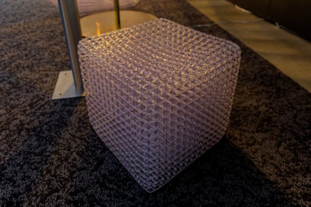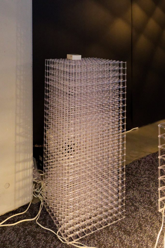 「世の中のプロダクトは、ほぼ面で構成されています。確かに面=二次元は非常に生産性が高く、艶やかな美しいものが生産できますが、その反面、わずかな傷がついただけで商品価値を失ってしまいます。その点、このような棒状を格子にしたプロダクツであれば、折れてもその場で修復できます。壊れても価値を損なわないし、新しい色で直してもいいわけです」