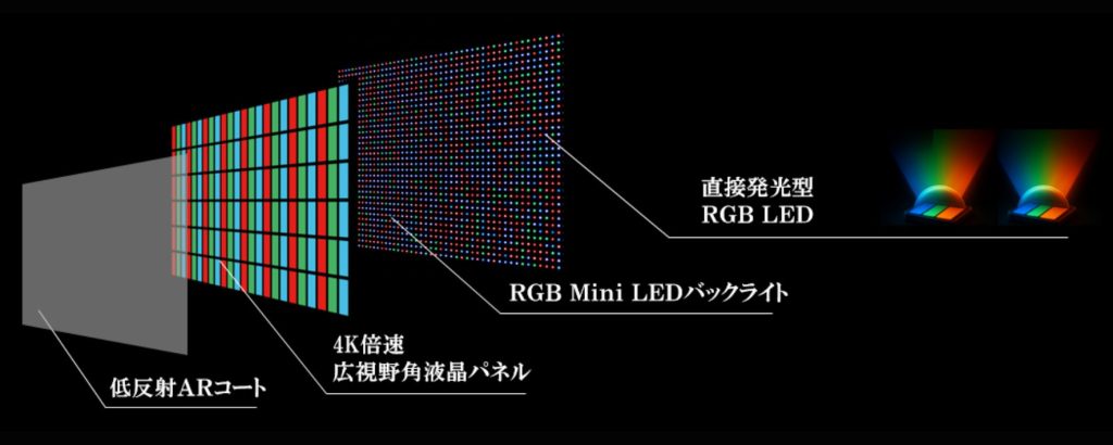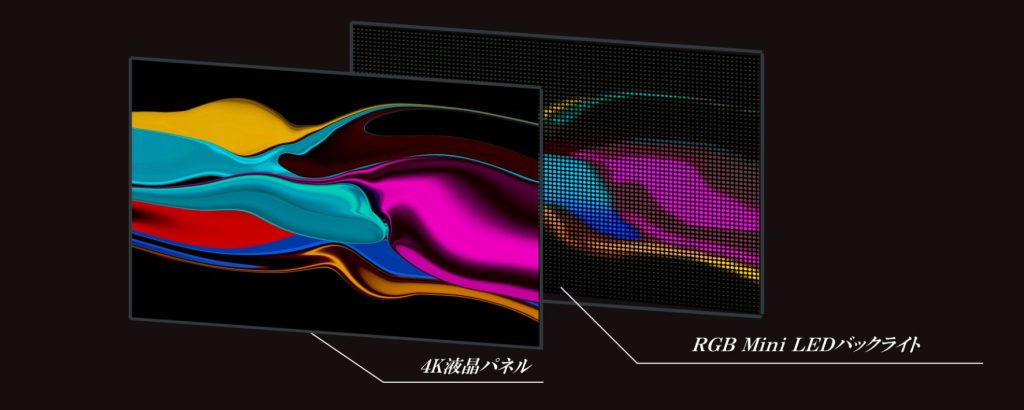 116ZX1Rの最大の特長であり、コアとなる技術は「RGB Mini LED液晶パネル」の採用である。