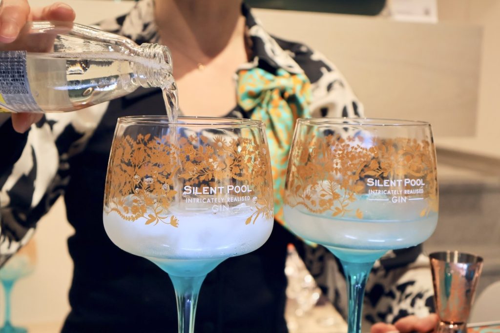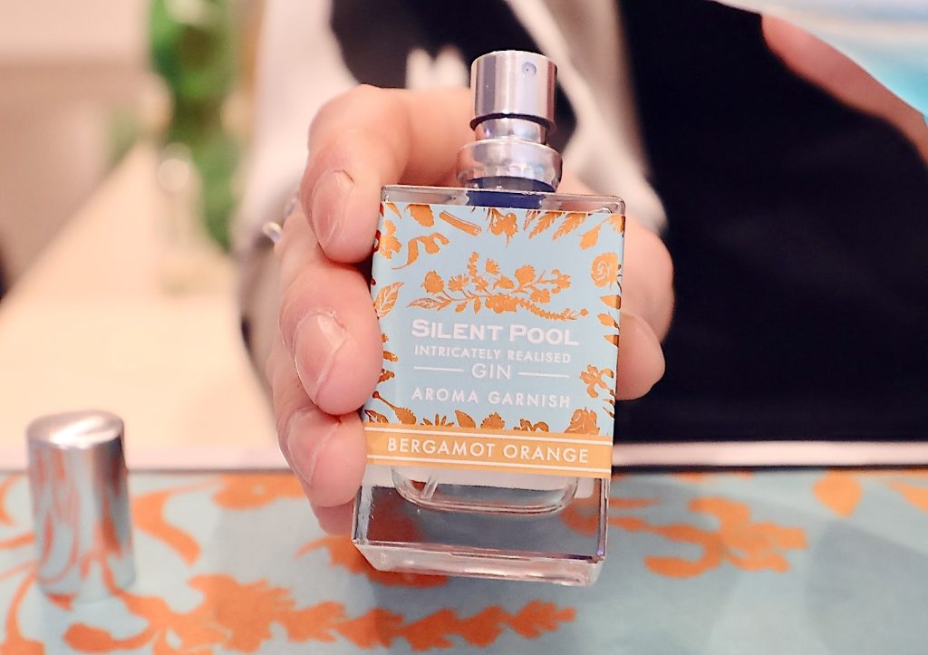 世界中に約6000種あると言われるジンの中でも、サイレントプール ジンは「ジンの香水」と言われるほど豊かな香りが特徴である。蒸留などのアプローチ中に使用される様々なハーブやボタニカルによるフローラルな香りとハーバルな風味、そして最後にハチミツで仕上げることで実現する“華やかで甘い後味”を堪能した。
