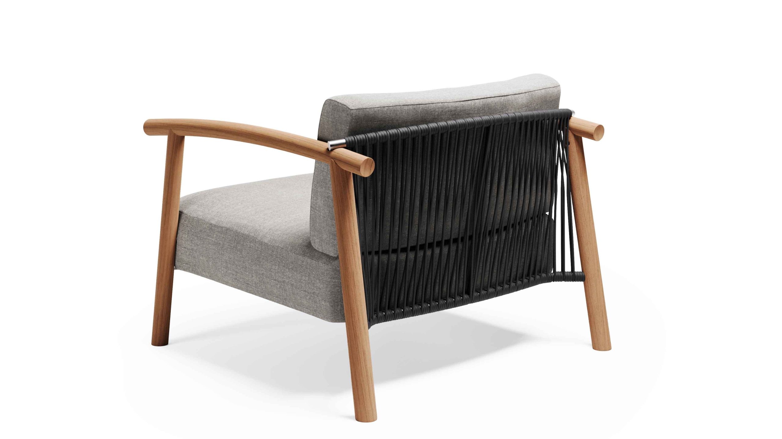 木材、ロープ、レザーといった異素材の調和が、控えめで洗練された佇まいを生み出す。