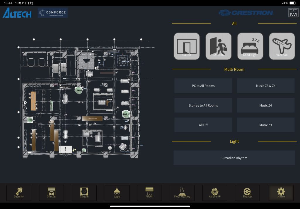 「4つのゾーンに分けて照明とオーディオ・ビジュアルを制御するもので、ざっとお話を聞いたところ2〜3日でできそうな印象でした。