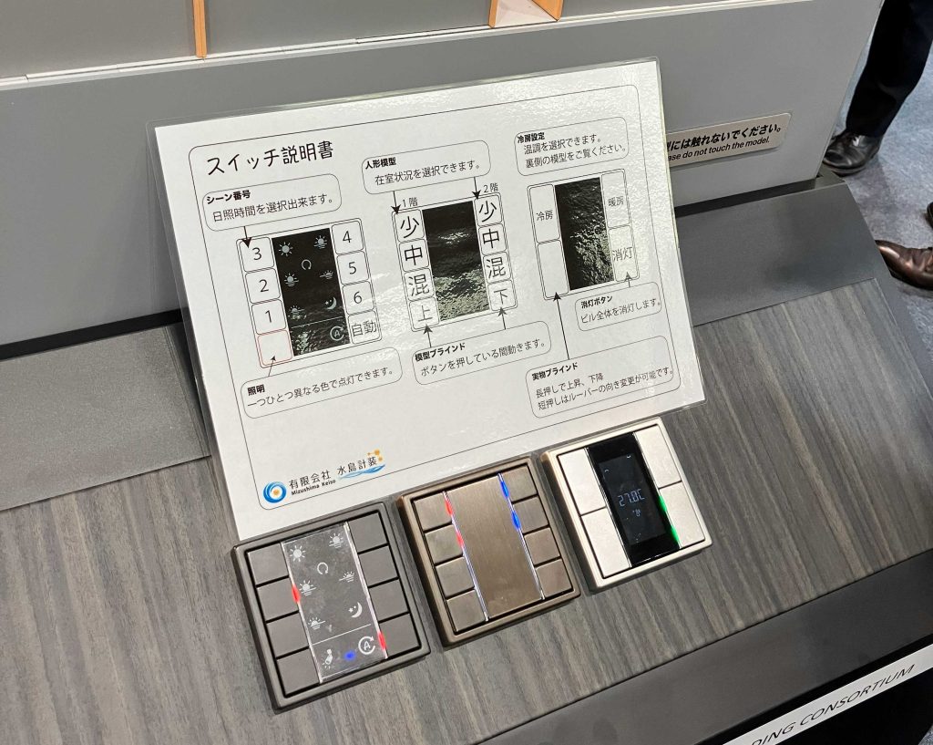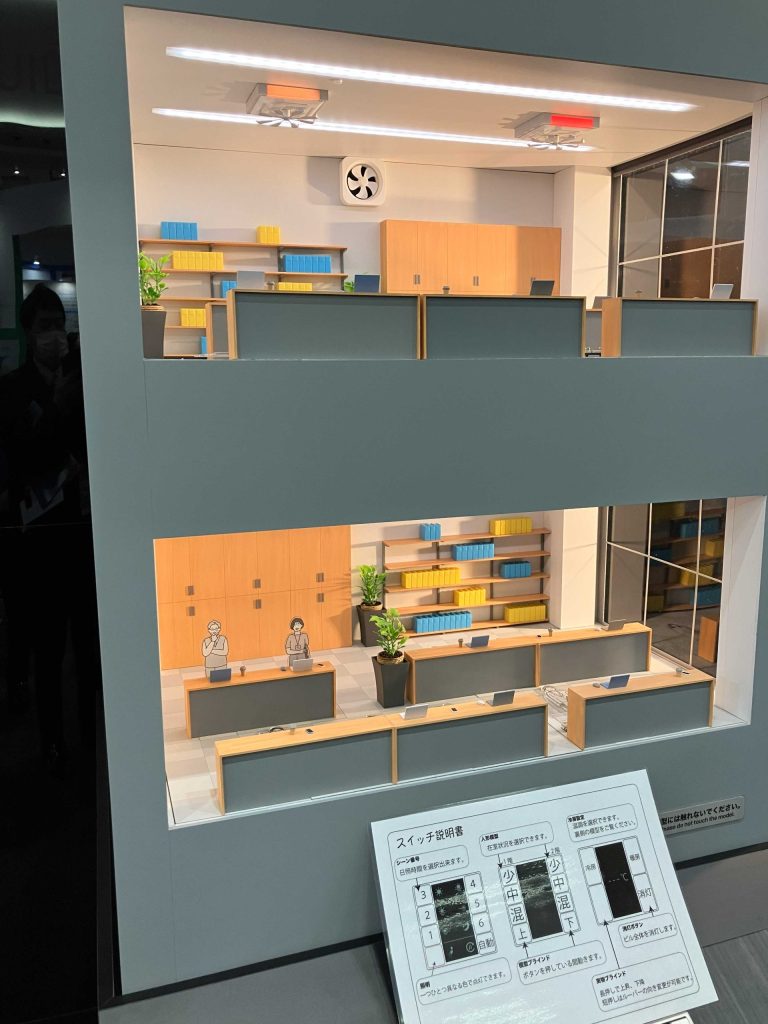 単なる模型ではなく、「サーカディアンリズム」を基軸とした照明シーンとロールスクリーン制御をリアルタイムで可視化する、実践的なデモとなっていた。