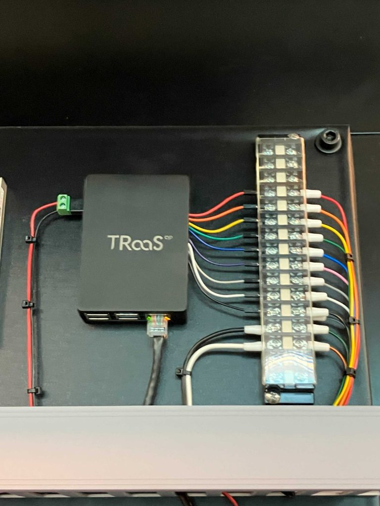 TRaasを中心に、KNXやCoolAutomationをはじめとするプロトコルがどの層で接続され、どのようにシーン制御へと落とし込まれるのか、そしてどの程度のサイズの制御盤が必要になるのか。