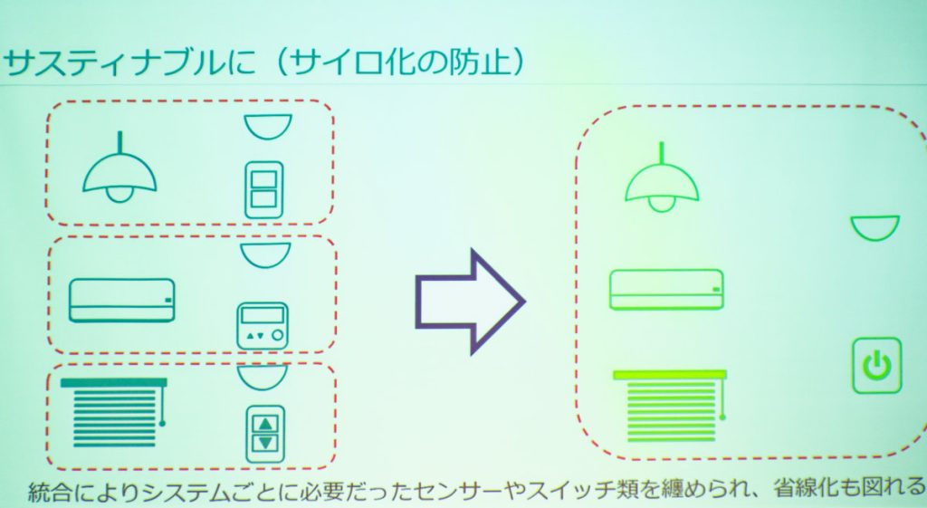 また、照明、エアコン、ブラインドとそれぞれに必要だったスイッチやセンサーをひとつに纏められるとも。
