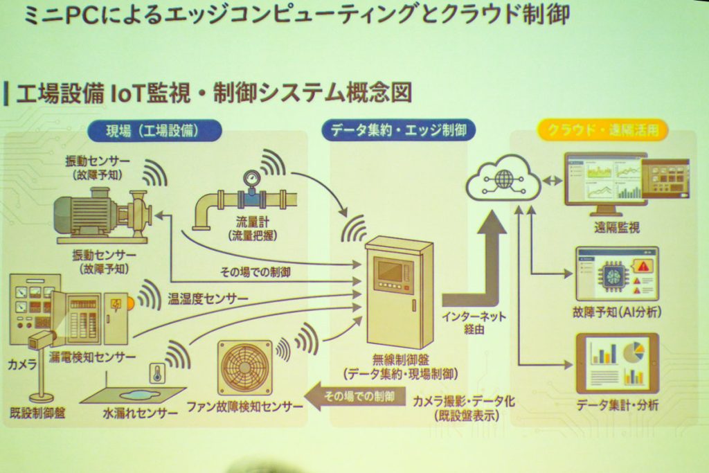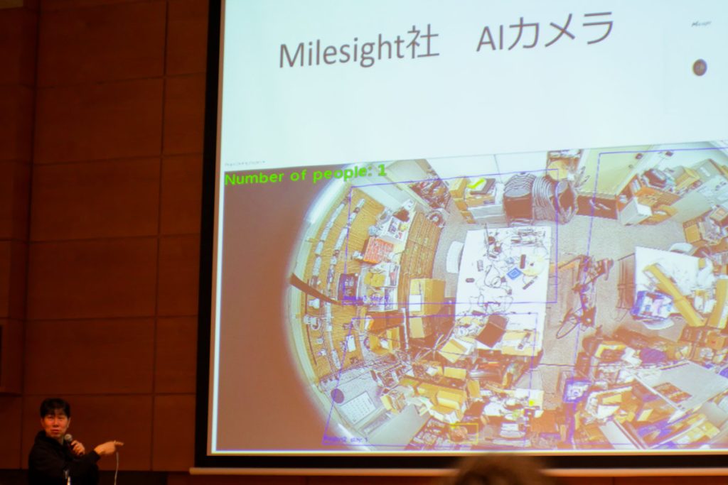 従来であればセンサーが3000ほど必要だった5万平米の現場を例に挙げ、1000ほどで済んだと明かした。