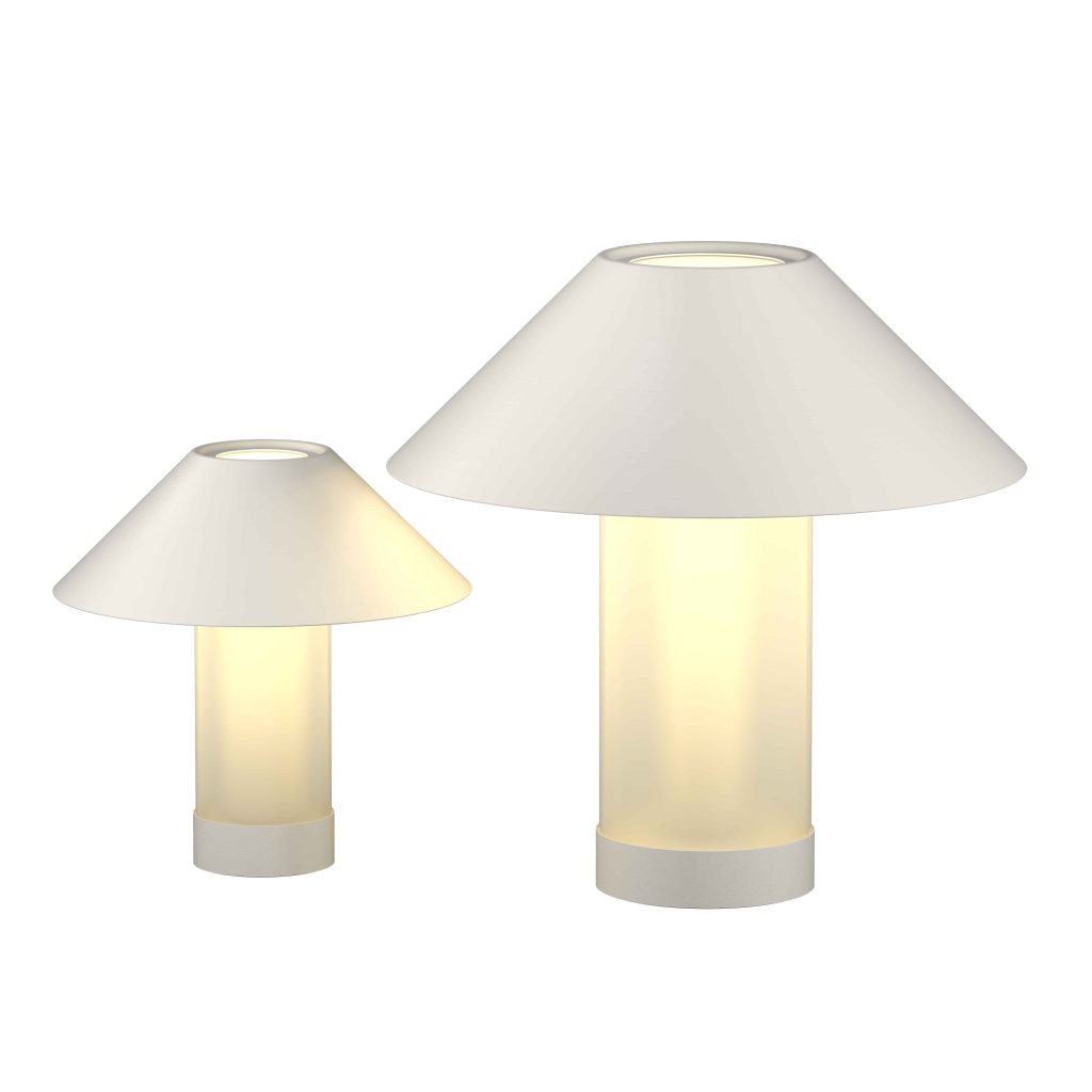 半透明のガラス管から透ける光が、読書の手元をやさしく照らすテーブルランプGEO(ジオ)。縦横比1:1の幾何学フォルムが、凛とした存在感を放つ。GEO 40 / GEO 60