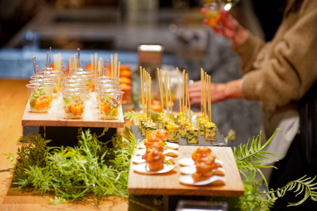 もちろん本来は静謐な空間だが、今回は実際にキッチンを使って調理が行われ、ゲストスピーカーとして招聘されたICE都市環境照明研究所所長・武石正宣さんによる乾杯の音頭と共にシャンパンと料理が振る舞われ、カクテルパーティーは宴たけなわとなった。