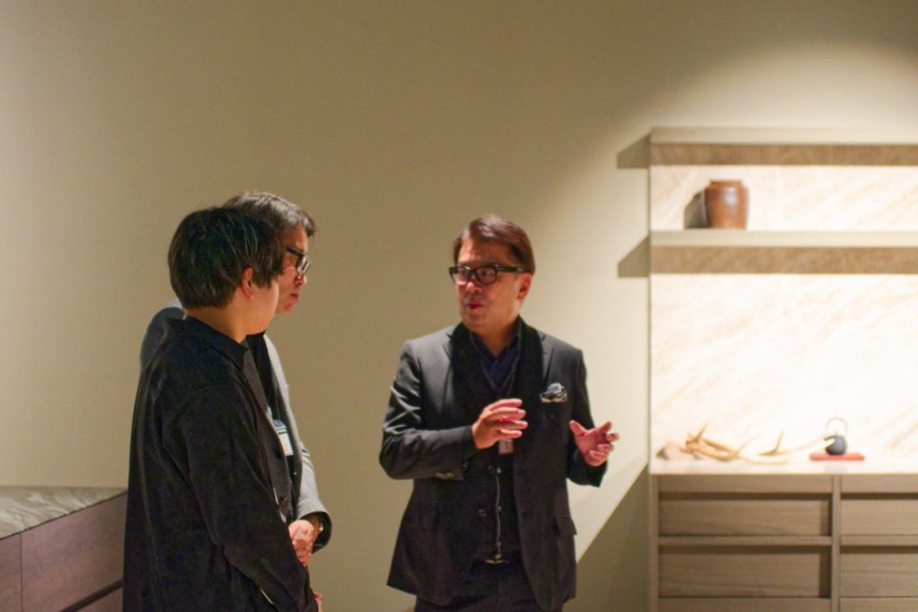 今回、一般には非公開となっている4階のプライベートフロアーが来場者に特別に公開された。東京・南青山という都会の真っ只中にも関わらず、能楽堂「山水」があるのだ。分林さんは、自然や身体と建築の有機的構築を信条とするNAP中村さんと大いに議論を交わしながら、この吟味された空間を仕上げたという。