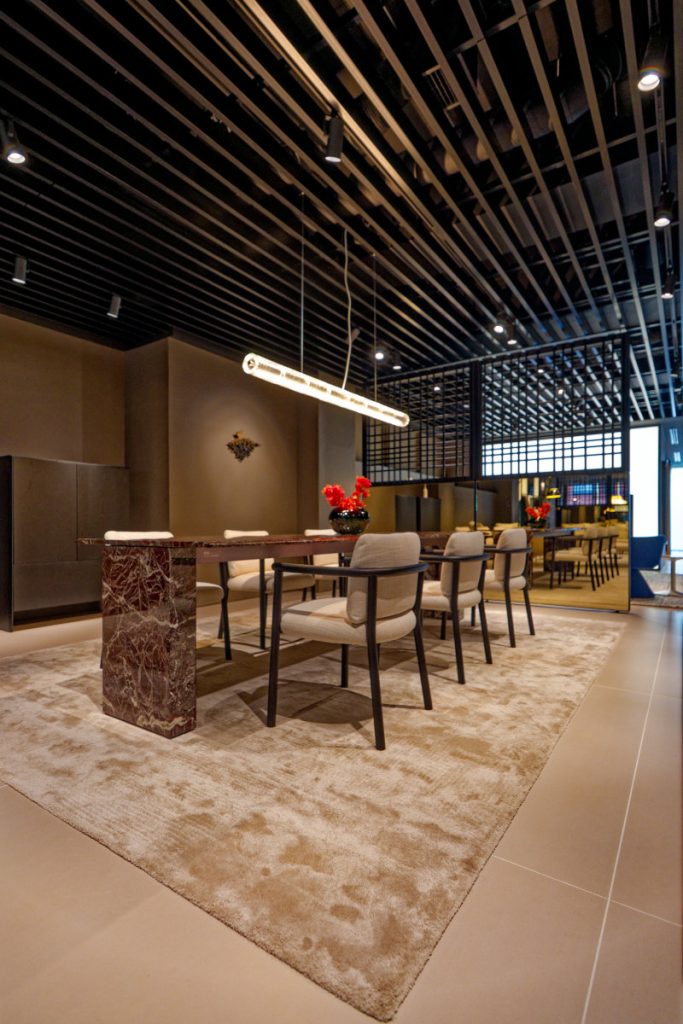 そうしたシーン演出に一役買っているのが、同じFlos B&B Italiaグループ内の2ブランドFlosとLouis Poulsenの照明。とくにFlosは同じイタリアブランドだが、大ぶりで個性的な器具が多いにもかかわらず、このショールーム空間への馴染み方には心底惚れ惚れするのでそちらにも注目してほしい。