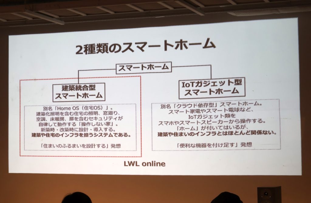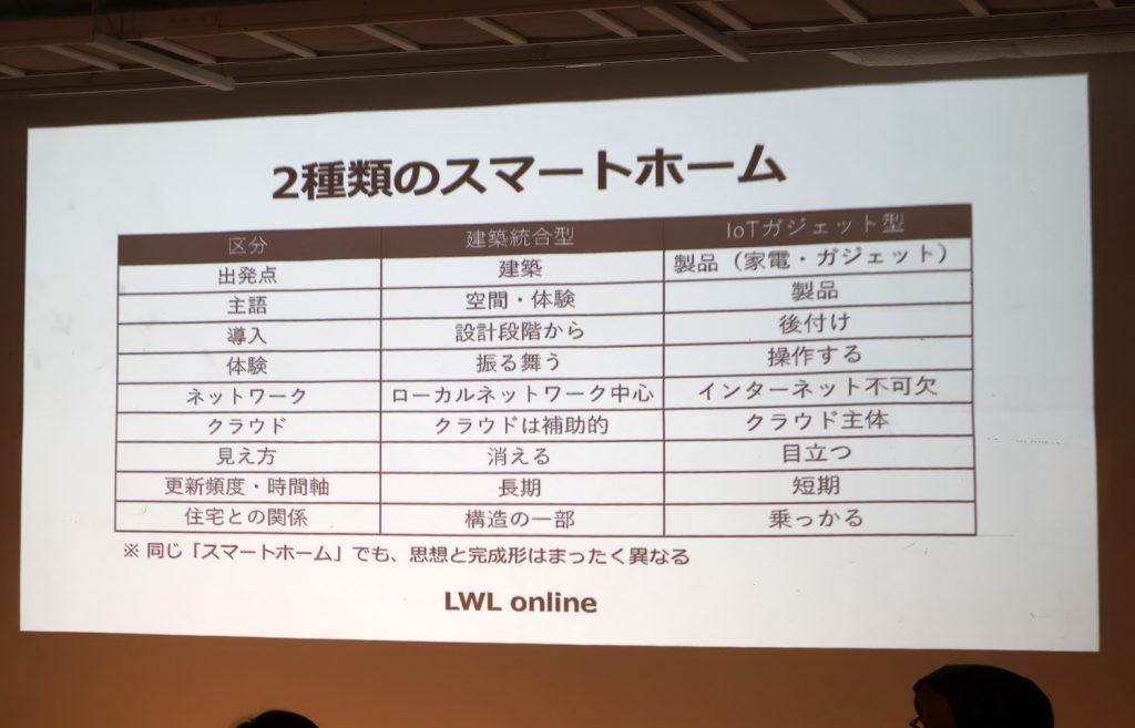 スマートスピーカーやスマート電球に代表されるIoTガジェット型のスマートホームは、製品単体としての利便性は高い一方、多くがクラウド依存の仕組みとなる。それに対しLWL onlineが重視しているのは、テクノロジーを住宅の一部=建築インフラとして設計する「建築統合型スマートホーム」という考え方だ。