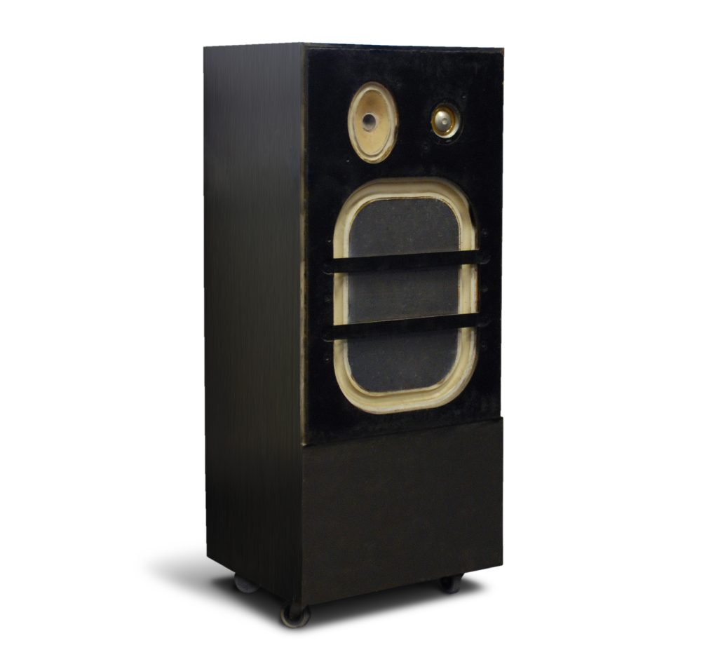 約6年を費やして完成したMUONの最大の特徴はスーパーフォームドアルミニウムで造型したエンクロージャーだった。全面が鏡面仕上げ、部屋の情景を全身に映し出すことで環境に溶け込み姿を消す。当時の邦貨にしてペア2000万円。