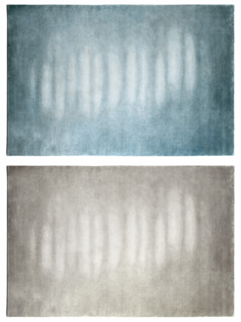 素材にはシルク100%の手織りを採用。同系色のグラデーションによる2つのカラーバリエーションが用意されており、アートピースのような静かなエレガンスをインテリアにもたらす。クラフツマンシップと現代的なデザイン感覚が融合した、ラグジュアリーな一枚である。