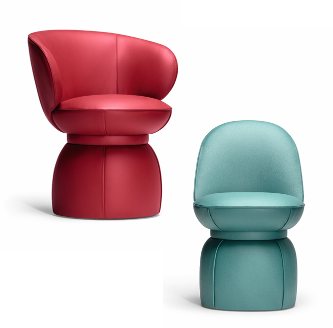 ポルトローナ・フラウの象徴的な素材であるPelle Frau®レザーを用い、鮮やかなカラーと幾何学的なパターンを組み合わせたデザインが特徴。ソファやアームチェア、ベッドのコーディネートに取り入れることで、空間に軽やかなリズムと彩りをもたらす。
