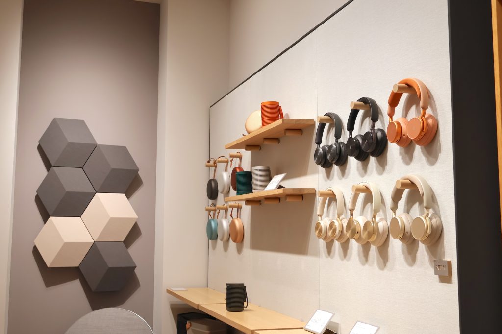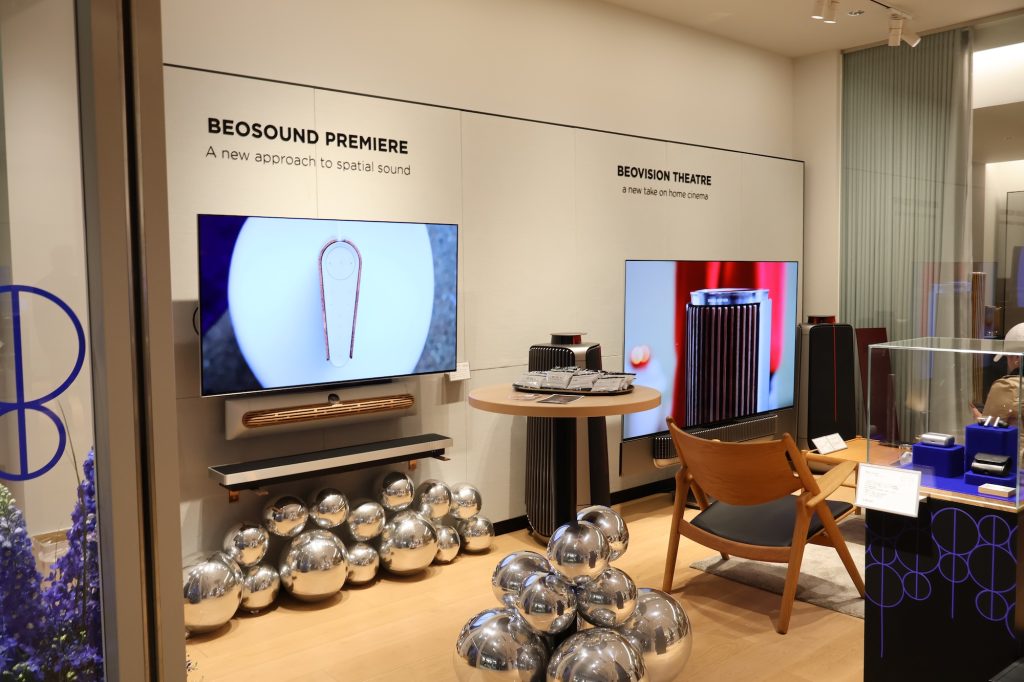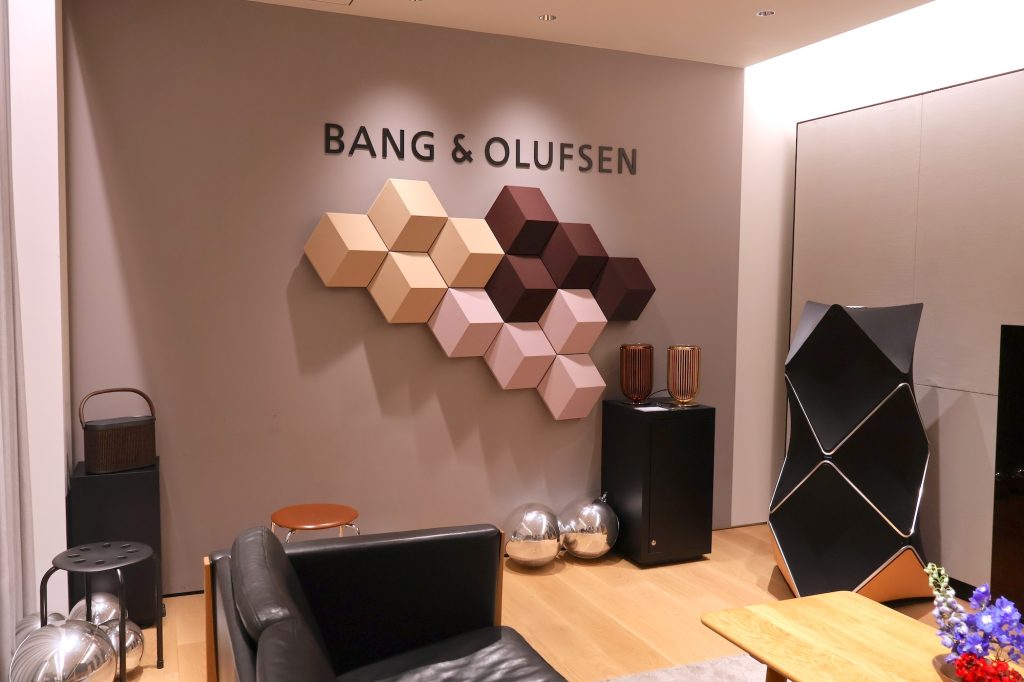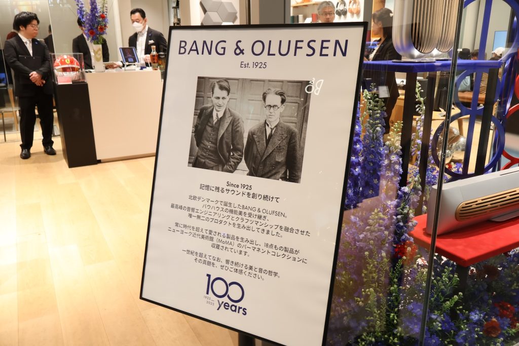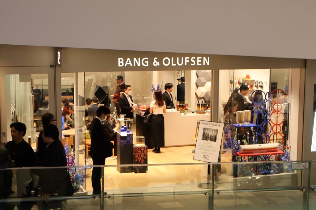 パーティー当日、表参道ヒルズ内にあるバング&オルフセンのショップ内では、その美しいスピーカーから奏でられる高精細なサウンドが、招待客たちの会話を心地よく包み込んでいた。