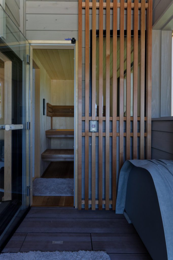 冬には氷点下になるというこの場所は、充実した風呂も完備。サウナと浴槽は開放感があるのがウリだ。