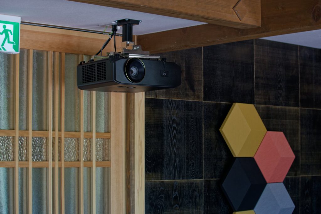 「簾に映してサイネージっぽく使うのもいいんです。プロジェクターはいろいろな使い方ができるので気に入っています」