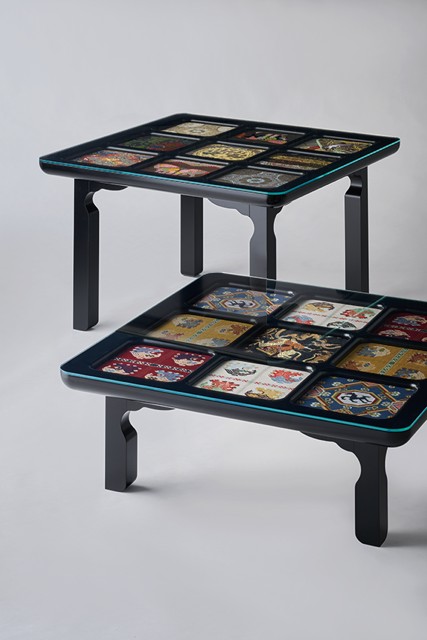 さらに、日本建築において格式を担ってきた「格天井」の立体的な格子は、見上げるための意匠から、手元で愛でるテーブルへと翻訳された。伝統的な造形語彙をそのまま復元するのではなく、現代の住空間に適した家具へと置き換えていく「翻訳」がこのコレクションの見どころである。