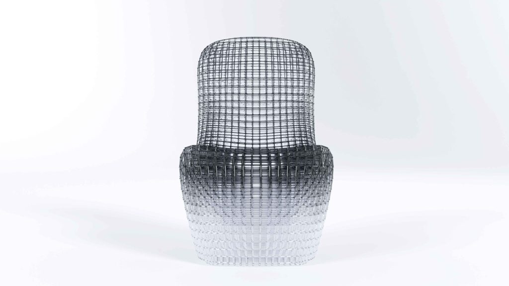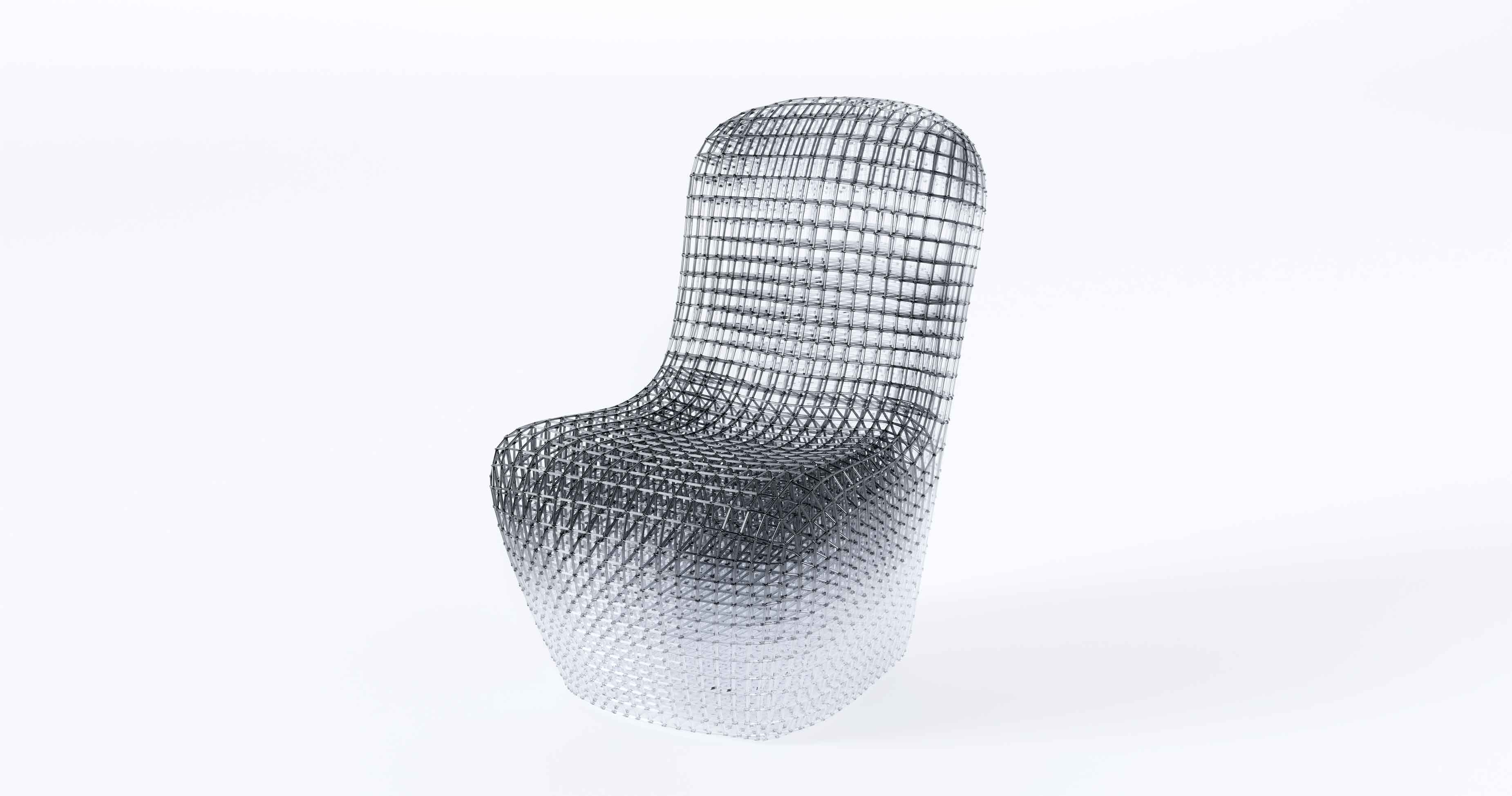 今回発表される《Link of Existence》は、そうしたブランドの矜持を、きわめて静謐なかたちで結晶化させた作品といえる。黒から透明へと移ろうグラデーションを纏った彫刻的な椅子は、つい先ほどまでそこに留まっていた身体の熱量や重み、そして時間の推移を想起させる。
