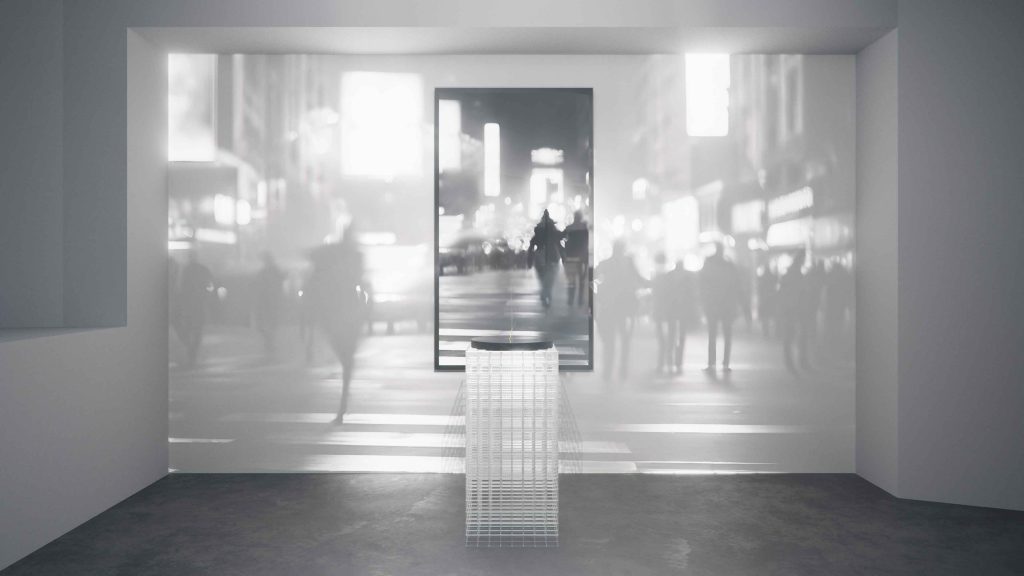 そこに描かれるのは、不在によって逆に縁取られる「影」であり、光を透過する構造体は、鑑賞者の視点によって密度と奥行きを変えながら、誰かがそこにいた確かな痕跡を空間に刻んでいく。家具でありながら、同時に残像のメディアでもあるその佇まいは、機能や造形という枠組みを超え、住まいの中にいかにして気配が宿るのかを問いかける。