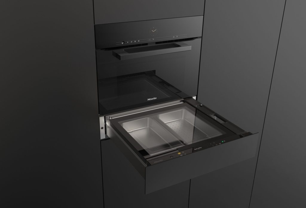 さらに、都市居住を意識した提案として注目したいのが、新しいスチームドロワーである。高さ45cmの電子レンジ機能付オーブンと組み合わせることで、ベーキング、温め、スチーム調理をひとつにまとめた3-in-1ソリューションを、高さ60cmの限られたスペースで実現する。大きさを競うのではなく、コンパクトな空間の中で機能の密度を高める発想は、現代の都市生活におけるキッチンデザインのひとつの答えと言えそうだ。