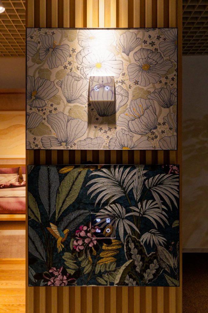 「テクラ(Tecla)」と呼ばれるこのパネルは、手をかざすとバックライトが点いてピクトグラムのアイコンが浮かび上がる。設備スイッチというよりもユーザーフレンドリーな楽しい仕掛けで、初めて使うゲストでもわかりやすい